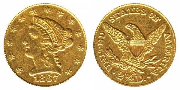 Gold $2.50 Quarter Eagle Coronet Head 1867-S
