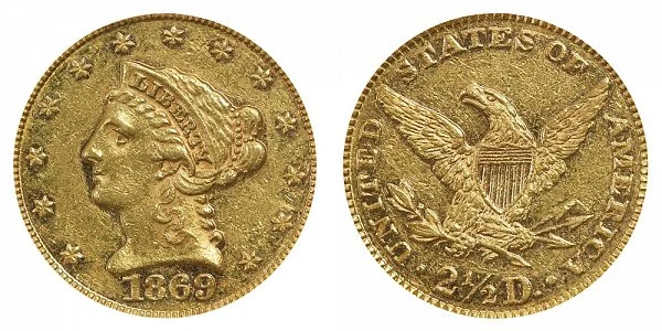 Gold $2.50 Quarter Eagle Coronet Head 1869-P