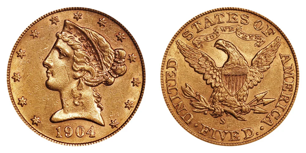 Gold $5 Half Eagle Coronet Head 1904-S