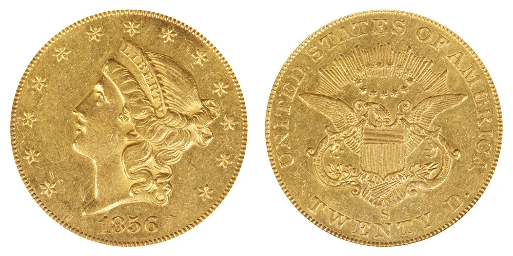 Gold $20 Double Eagle Coronet Head 1856-S
