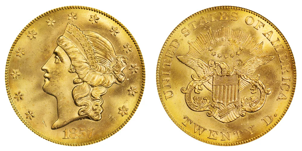 Gold $20 Double Eagle Coronet Head 1857-S