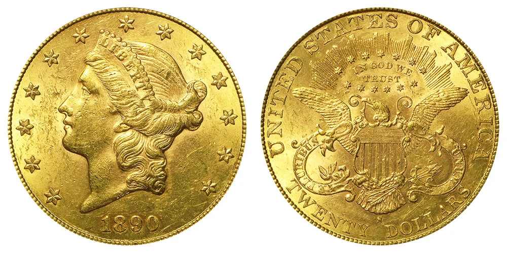 Gold $20 Double Eagle Coronet Head 1890-S