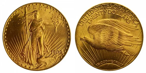 Gold $20 Double Eagle Saint Gaudens 1909-S