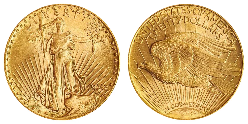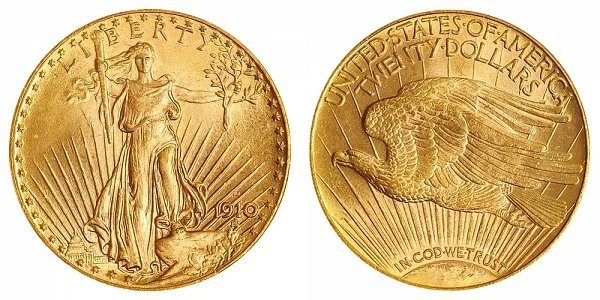 Gold $20 Double Eagle Saint Gaudens 1910-D