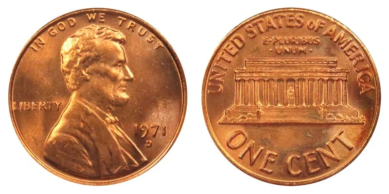 1971-D Lincoln Memorial Penny ~ Brilliant Uncirculated MS60+ Condition Still in