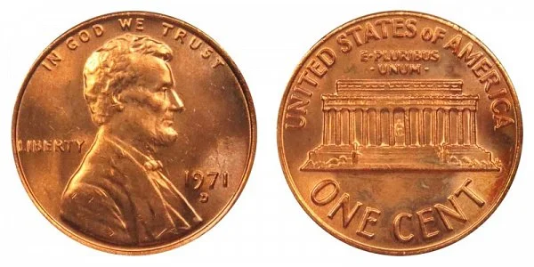 USA Coin Book Estimated Value of 1971-D Lincoln Memorial Penny is Worth $1.24 or more in Uncirculated (MS+) Mint Condition. Click here to Learn How to use Coin Price Charts . Also, click here to Learn About Grading Coins . The Melt Value shown below is how Valuable the Coin's Metal is Worth (bare minimum value of coin). Click here to see the Melt Value of every US Coin .