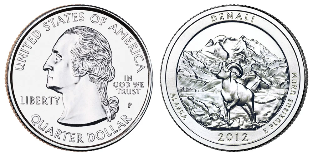 USA Coin Book Estimated Value of 2012-P Denali America The Beautiful Quarter is Worth $0.61 to $2.50 or more in Uncirculated (MS+) Mint Condition. Click here to Learn How to use Coin Price Charts . Also, click here to Learn About Grading Coins . The Melt Value shown below is how Valuable the Coin's Metal is Worth (bare minimum value of coin). Click here to see the Melt Value of every US Coin .