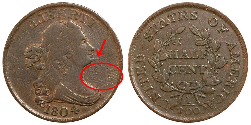 1804 Spiked Chin Draped Bust Half Cent Variety