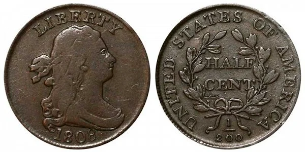 1808 Draped Bust Half Cent - Normal Date