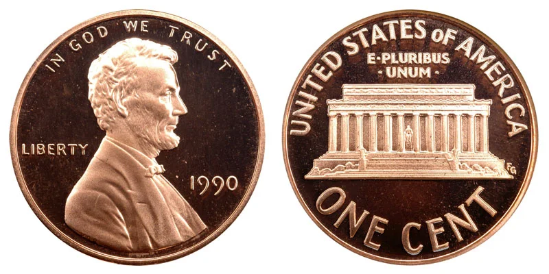 1990 No S Mint Mark Lincoln Memorial Cent Penny Proof
