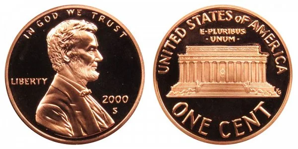 What This Coin Looks Like (Obverse, Reverse, Mint Mark Location, Special Features, etc.): 2000 S Lincoln Memorial Cents (Penny) were struck only as Proof coins.