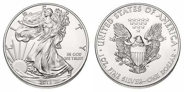 What This Coin Looks Like (Obverse, Reverse, Mint Mark Location, Special Features, etc.): Both the West Point and San Francisco Mint produced 2013 bullion silver eagles (without mint mark). The combined mintage figure for both are 42675000.