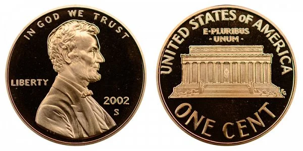 What This Coin Looks Like (Obverse, Reverse, Mint Mark Location, Special Features, etc.): 2002 S Lincoln Memorial Cents (Penny) were struck only as Proof coins.