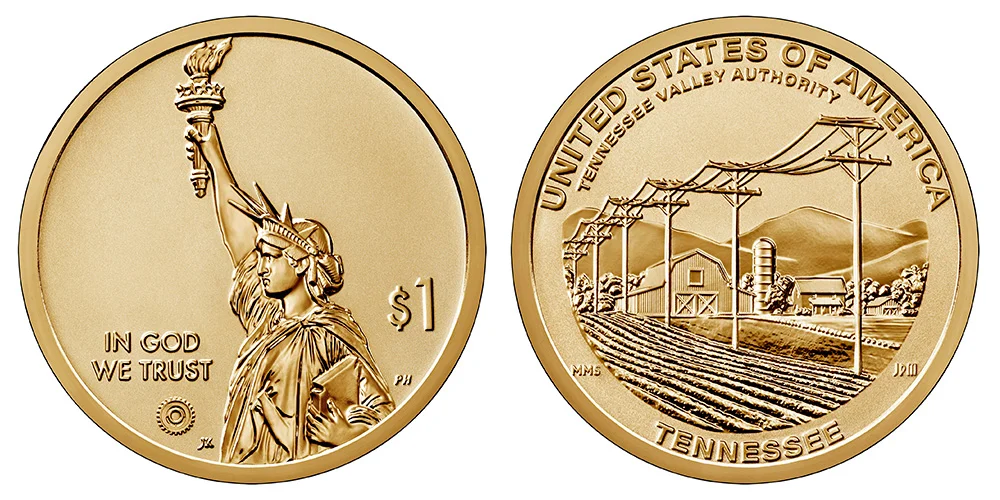 What This Coin Looks Like (Obverse, Reverse, Mint Mark Location, Special Features, etc.): "Tennessee Valley Authority and Rural Electrification - Tennessee"