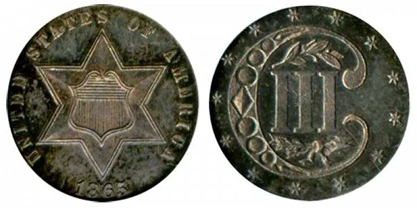 USA Coin Book Estimated Value of 1865 Silver Three Cent Piece is Worth $667 in Average Condition and can be Worth $2,075 to $2,831 or more in Uncirculated (MS+) Mint Condition. Proof Coins can be Worth $1,065 or more. Click here to Learn How to use Coin Price Charts . Also, click here to Learn About Grading Coins . The Melt Value shown below is how Valuable the Coin's Metal is Worth (bare minimum value of coin). Click here to see the Melt Value of every US Coin .