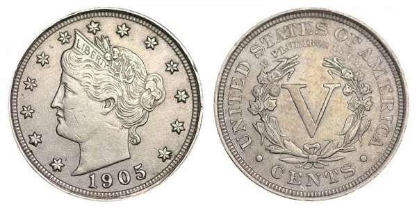 USA Coin Book Estimated Value of 1905 Liberty Nickel is Worth $3.62 in Average Condition and can be Worth $103 to $154 or more in Uncirculated (MS+) Mint Condition. Proof Coins can be Worth $344 or more. Click here to Learn How to use Coin Price Charts . Also, click here to Learn About Grading Coins . The Melt Value shown below is how Valuable the Coin's Metal is Worth (bare minimum value of coin). Click here to see the Melt Value of every US Coin .