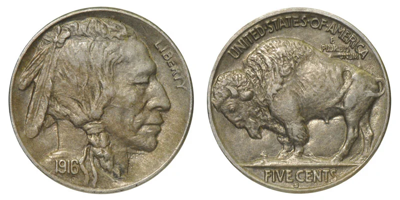 USA Coin Book Estimated Value of 1916-S Buffalo Nickel is Worth $22 in Average Condition and can be Worth $281 to $376 or more in Uncirculated (MS+) Mint Condition. Click here to Learn How to use Coin Price Charts . Also, click here to Learn About Grading Coins . The Melt Value shown below is how Valuable the Coin's Metal is Worth (bare minimum value of coin). Click here to see the Melt Value of every US Coin .