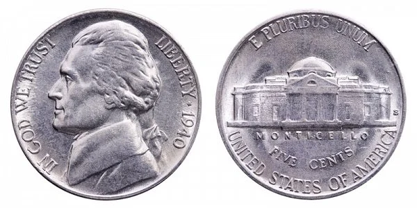 USA Coin Book Estimated Value of 1940-S Jefferson Nickel is Worth $0.18 in Average Condition and can be Worth $2.79 to $19 or more in Uncirculated (MS+) Mint Condition. Click here to Learn How to use Coin Price Charts . Also, click here to Learn About Grading Coins . The Melt Value shown below is how Valuable the Coin's Metal is Worth (bare minimum value of coin). Click here to see the Melt Value of every US Coin .