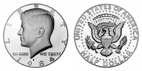 1984 S Kennedy Half Dollars were struck only as Proof coins.