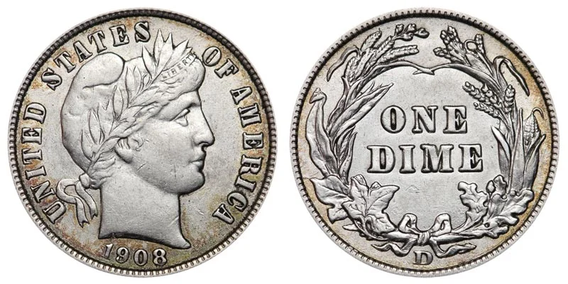 1908 D Silver Barber Dime