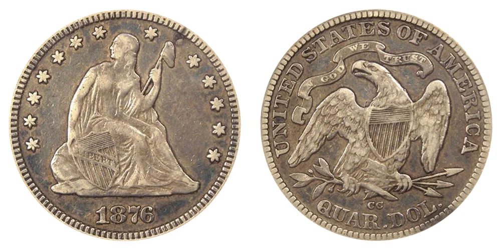 1876 CC Seated Liberty Quarter