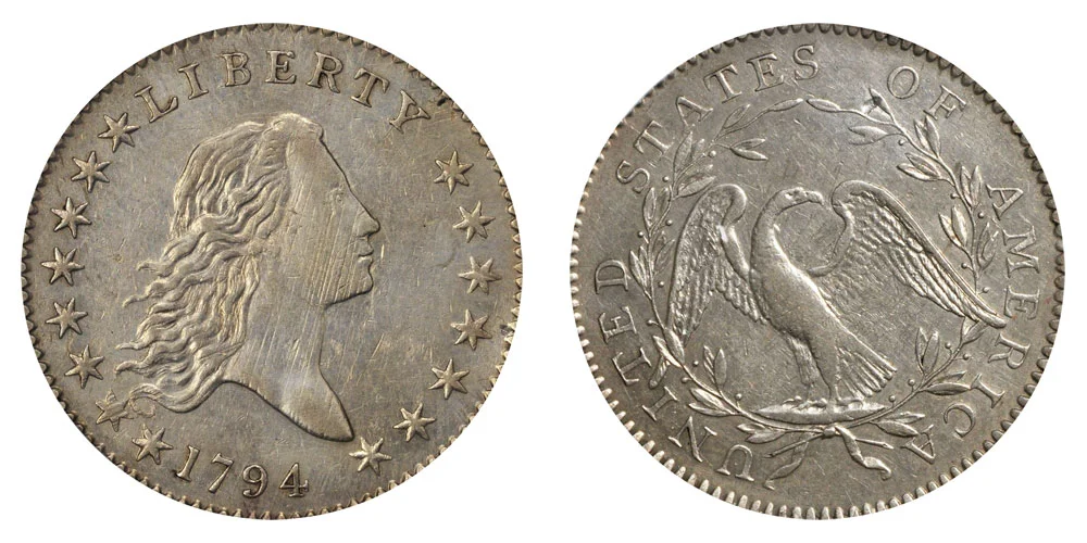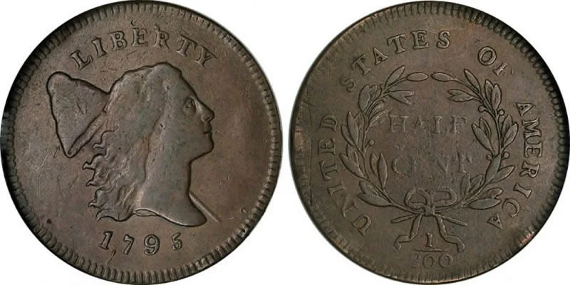 In addition to the draped bust design, Scot was also responsible for designing the Liberty Cap Half Cent (Head Facing Right variety), Flowing Hair Half Dime, Flowing Hair Half Dollar and Flowing Hair Silver Dollar as well. The flowing hair designs are officially some of the first designs for many of these silver coins and even predated the capped liberty designs in some cases. Joseph Wright actually designed the original liberty cap half cent in 1793 but with the liberty facing left. Here are more of Scot's designs shown below: