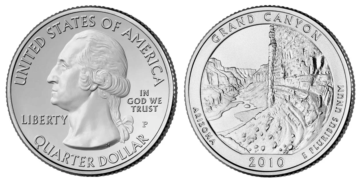 The plan is to run the program from between 2010 and 2021, which 56 different quarter designs on the reverse of the coin (back side or tails side). This would include a historical National Park, Memorial or Site for each state, Washington DC (District of Columbia) and the 5 major US Territories. 5 different designs would be released each year, so only 1 quarter is scheduled to be released in 2021. Depending on the decision of the Secretary of the US Treasury, this program could be extended all the way through 2033. Some of the quarters in the America the Beautiful Series, depict parks and sites that were previously depicted on the State quarters. Arizona's Grand Canyon, California's Yosemite Park and South Dakota's Mount Rushmore are once again depicted in America the Beautiful, but the same sites will have different designs.