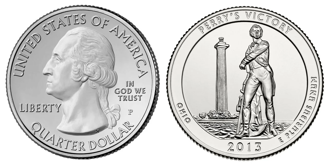 Perry's Victory and International Peace Memorial Depicted on this coin is a statue of Master Commandant Oliver Hazard Perry. Depicted in the background behind Perry is the Peace Memorial. |