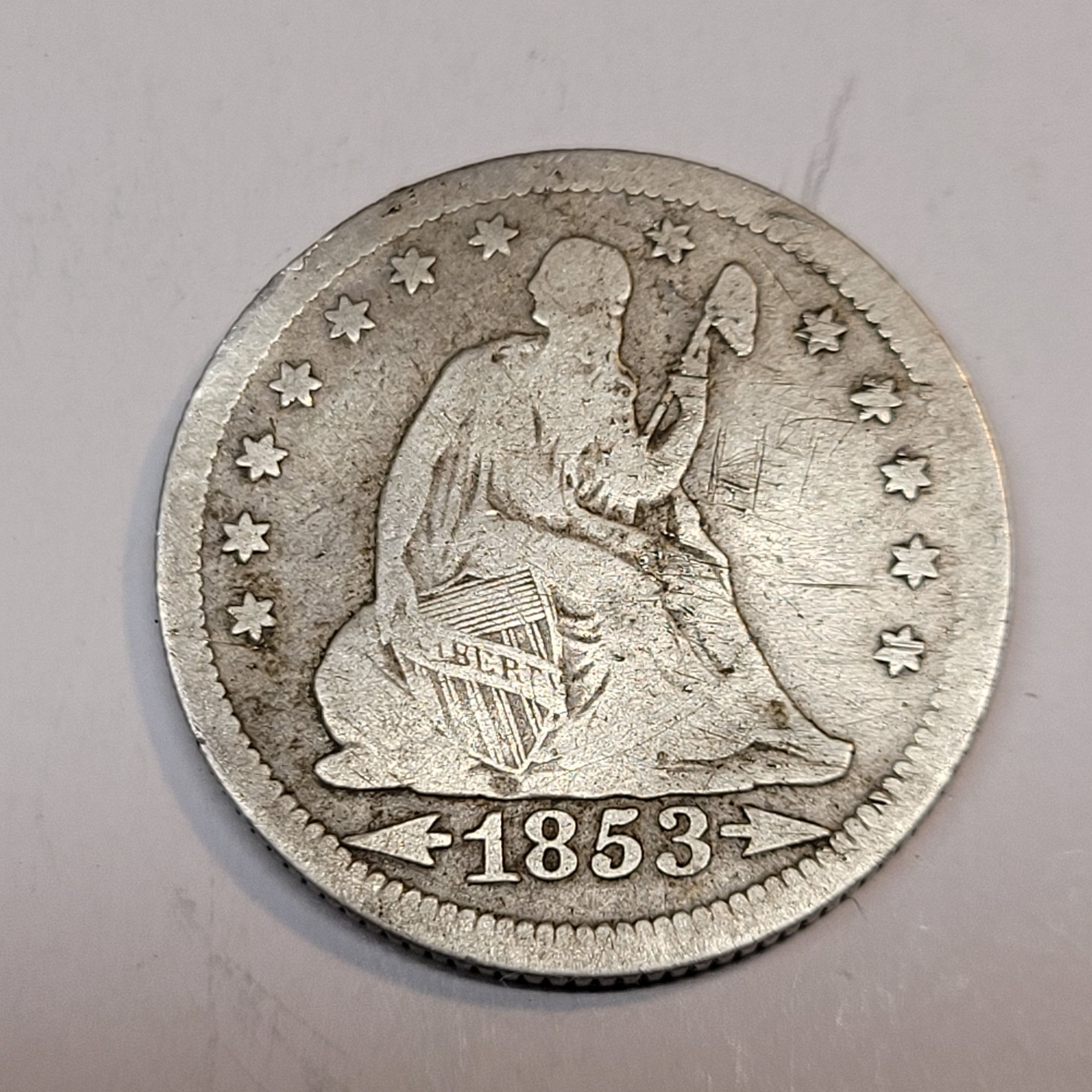 1853 Seated Liberty Quarter Arrows and Rays Slightly bent.1853 Seated Liberty Quarter Arrows and Rays Slightly bent.