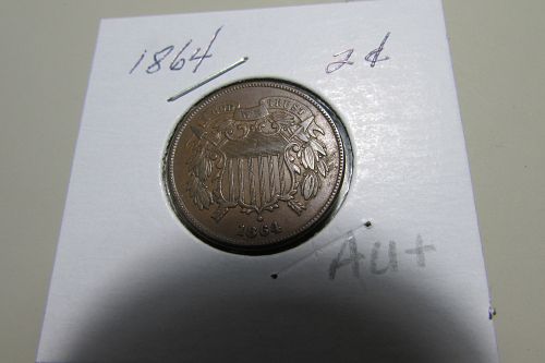 1864 Two Cent Piece, Bronze Large Motto ***CH AU***