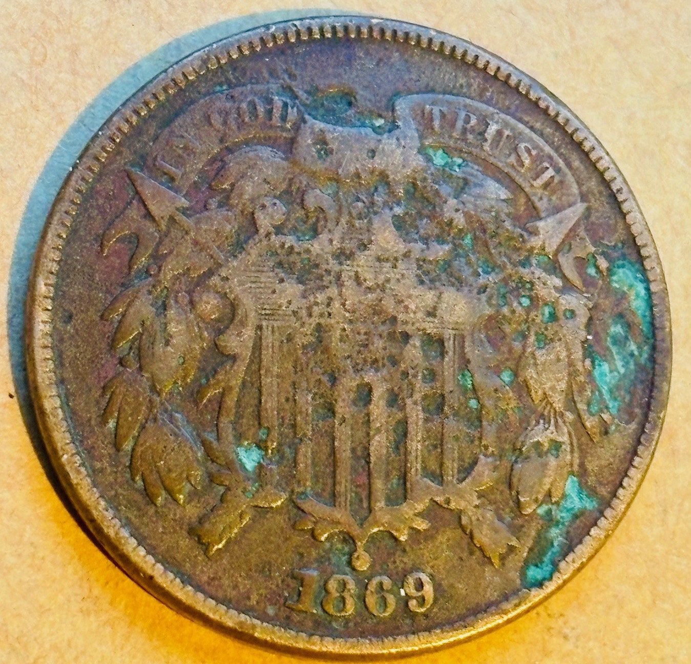 1869 Two Cent Pice, Good condition.