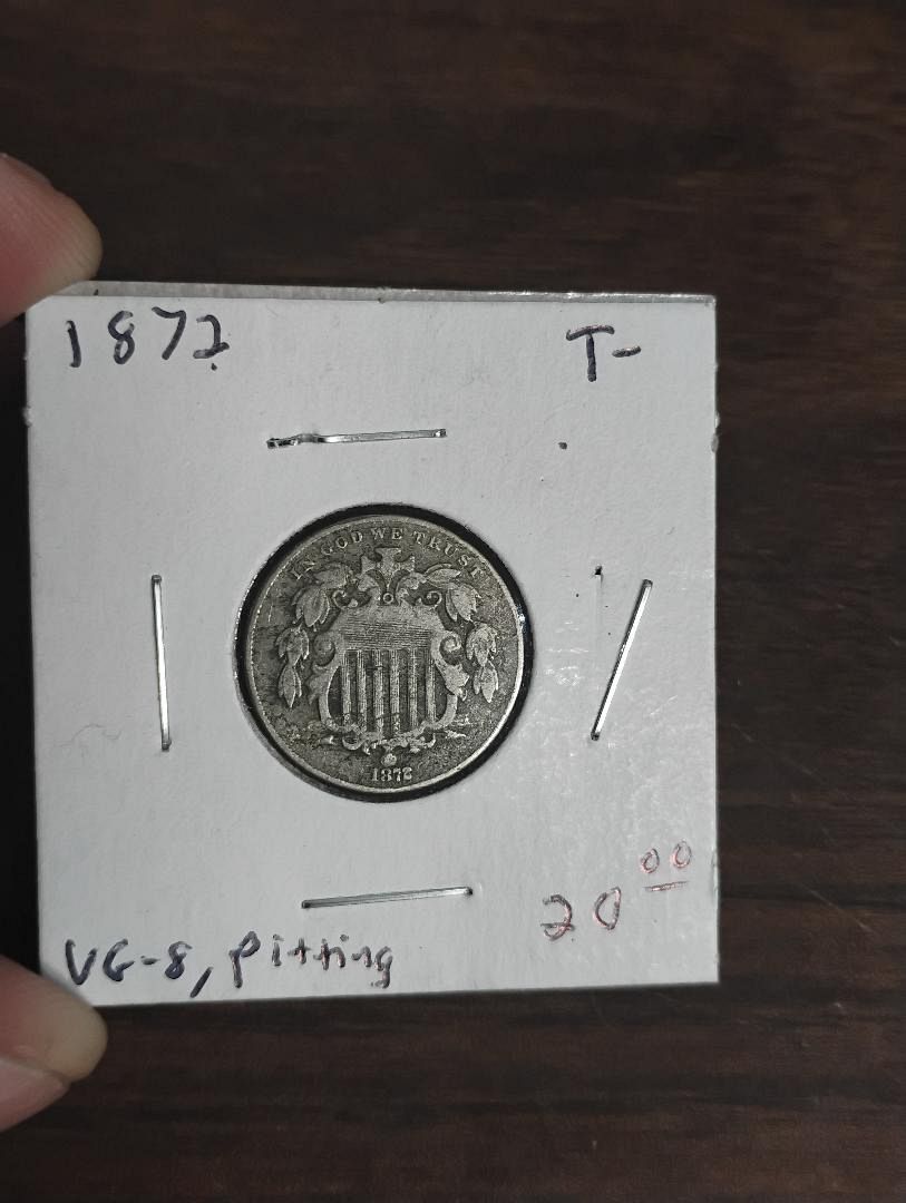 1872 SHIELD NICKEL VG-8, DETAILS: PITTING