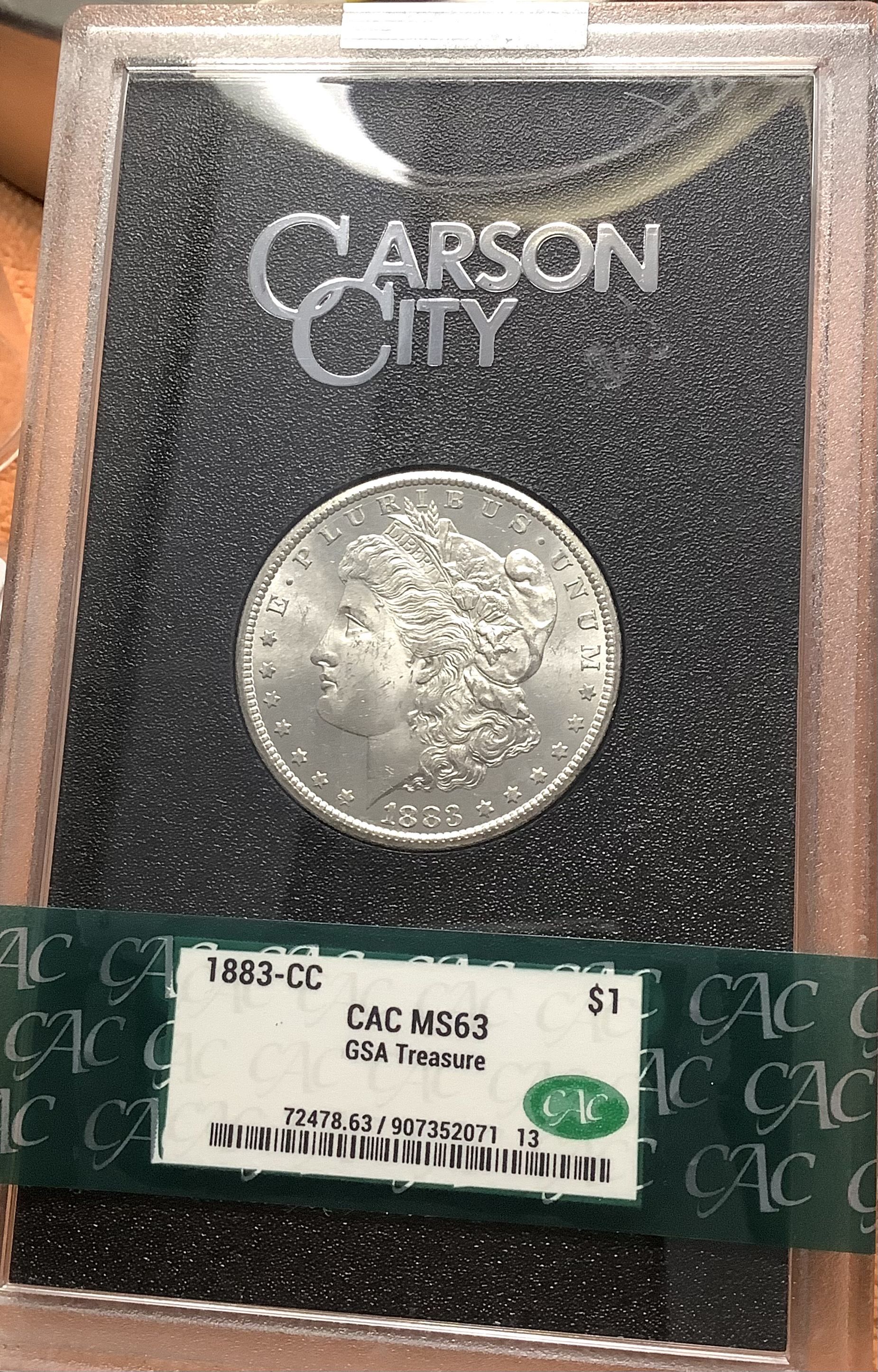 1883 CC GSA Morgan Silver Dollar Hard Pack, freshly graded by CAC Grading CACG MS63
