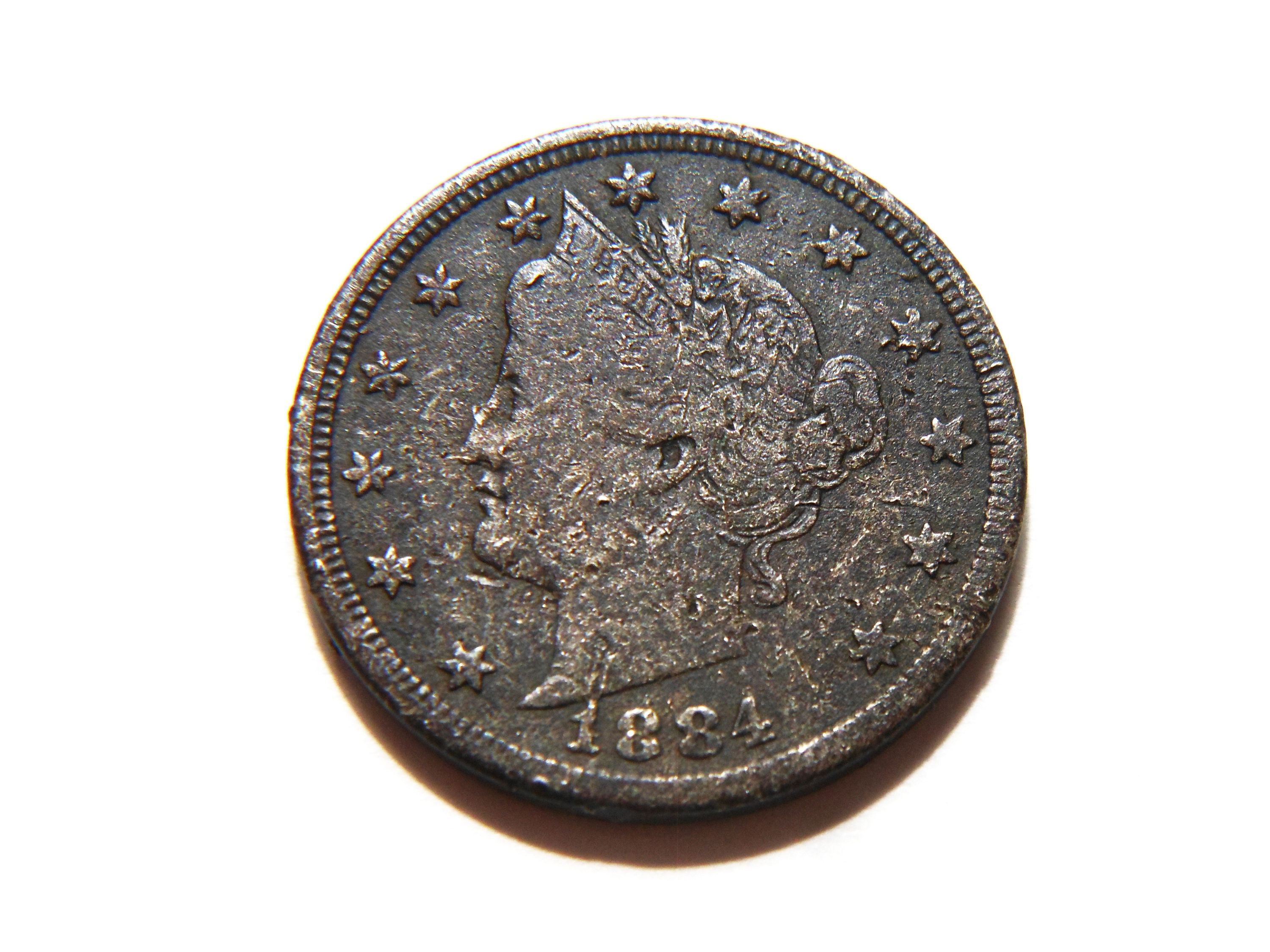 Check or Money Order1884 Liberty V Nickel with F+ details. Coin has some rim dings and a couple of contact marks. Please look at the pictures and grade for yourself.