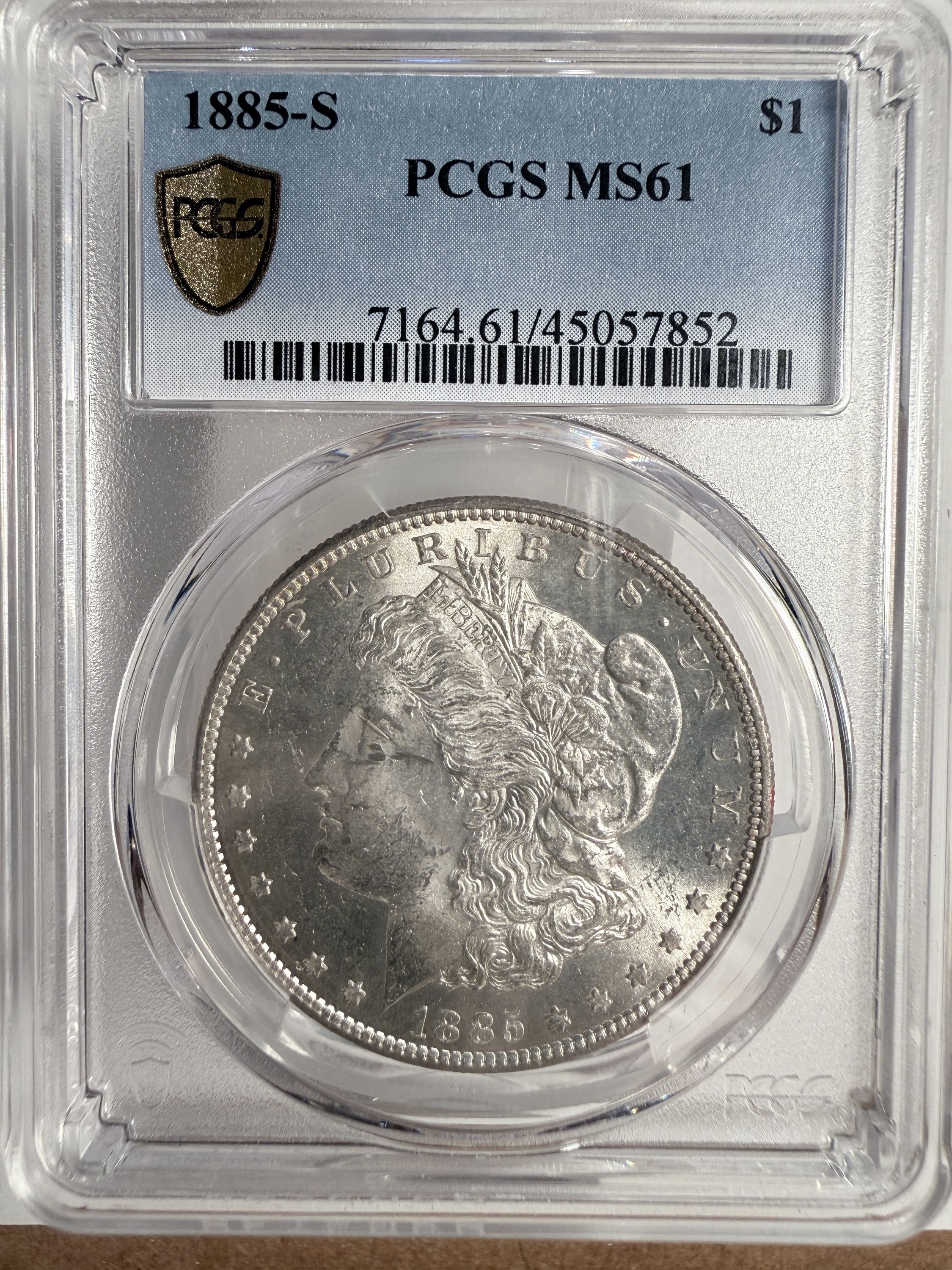 1885-S Morgan Silver Dollar, MS61 PCGS. (13048)1885-S Morgan Silver Dollar, MS61 PCGS. (13048)1885-S Morgan Silver Dollar, MS61 PCGS. (13048)1885-S Morgan Silver Dollar, MS61 PCGS. (13048)