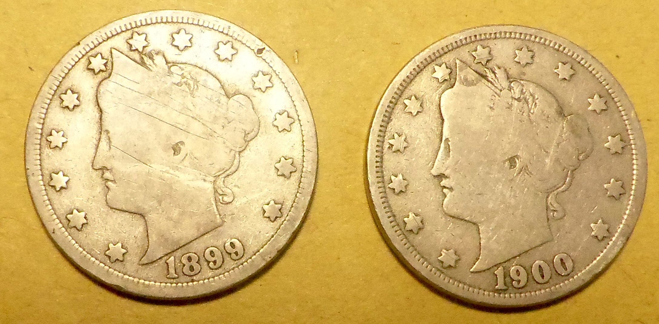 Check or Money Order1899P and a 1890P Liberty Nickel Lot JULVN