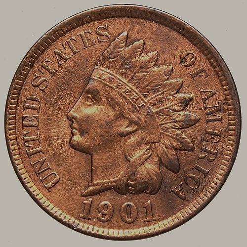 1901 Indian Head Cent #33 Brightened1901 Indian Head Cent #33 Brightened