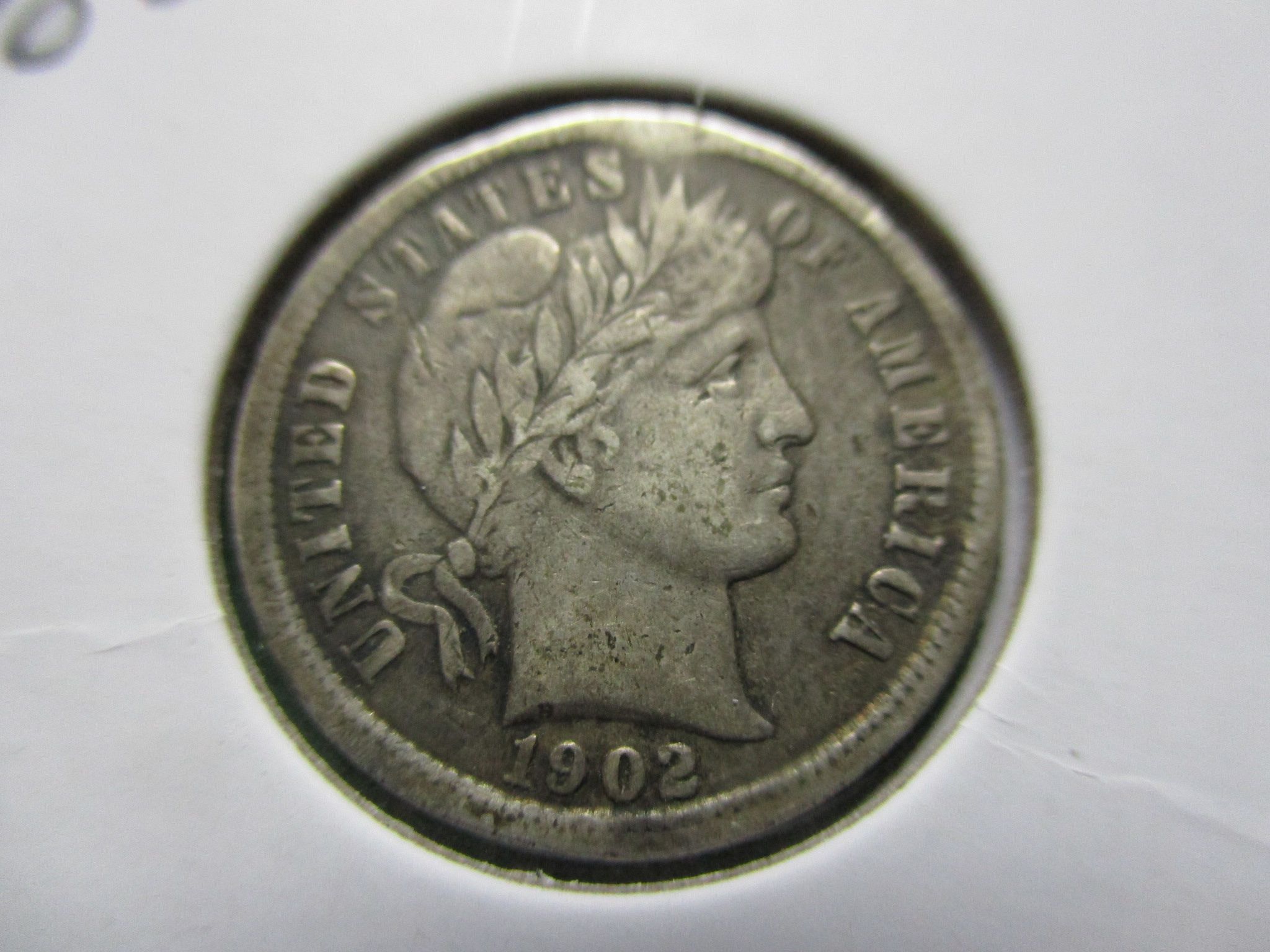 1902  XF40 Barber Dime.  Item: 10 B02-07.1902  XF40 Barber Dime.  Item: 10 B02-07.