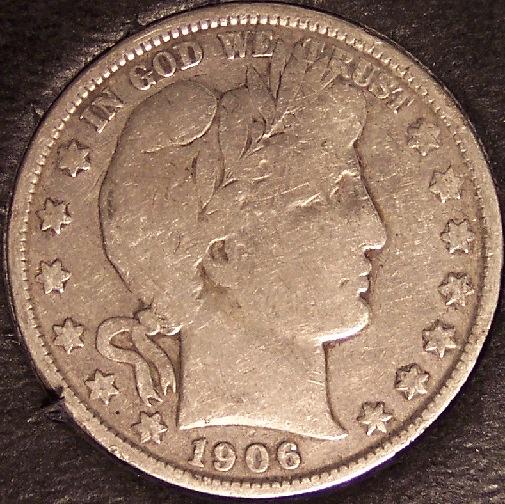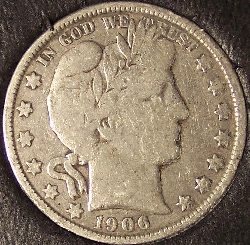 Up for sale, a 1906-S Barber Silver half dollar that I would judge to be VERY GOOD, but check the photos and make your own determination. The coin you see is the one you will receive, no stock photos, no switched out coins, and no Photoshop. I have a 7 day money back guarantee and will combine shipping, Grading estimates are just that, estimates based on experience and a little help from Photograde. If the photos are not clear or you have any questions, feel free to contact me. Item is cross posted and subject to prior sale. Thank you for shopping at Grandpaw's Attic.