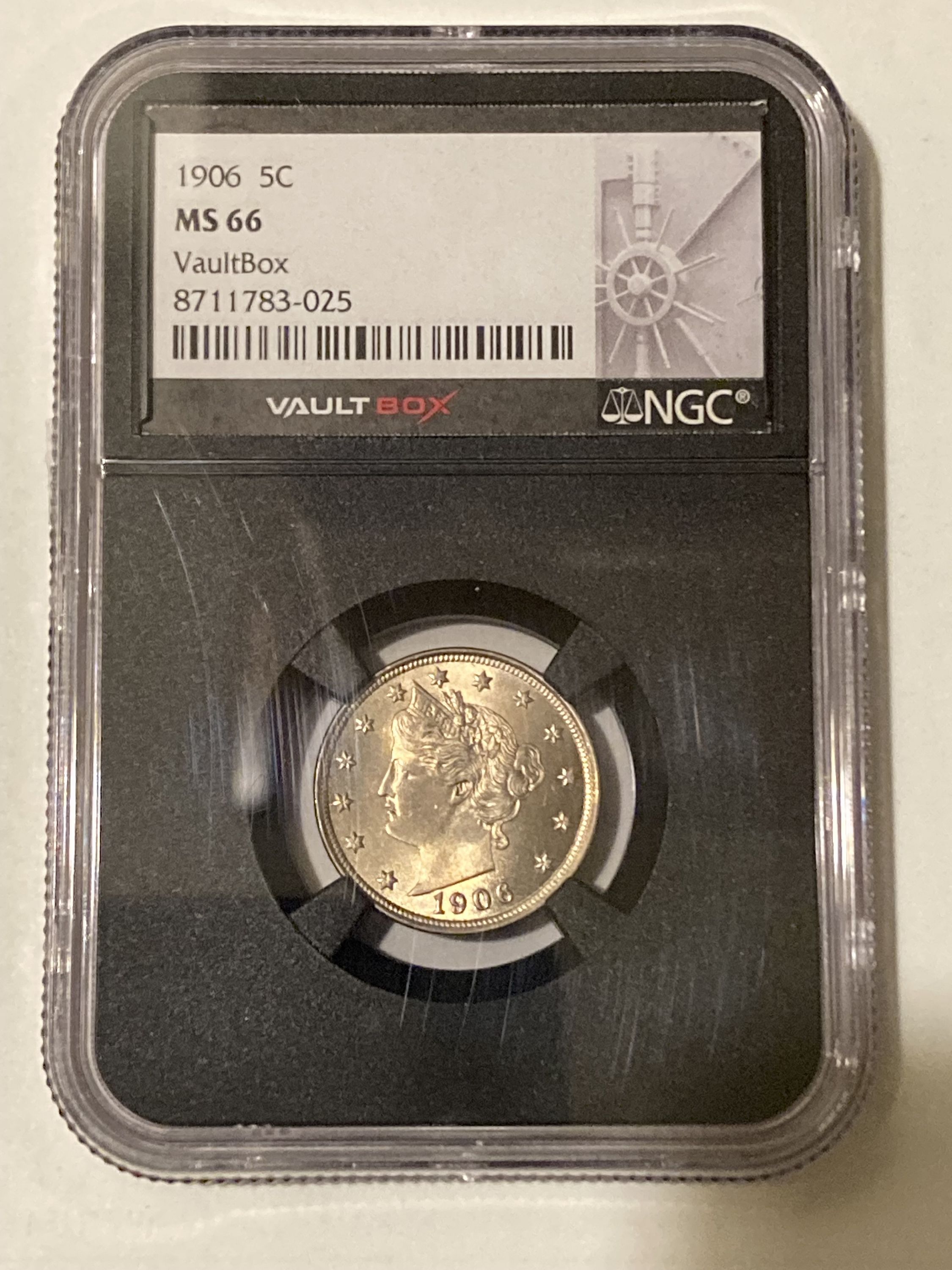 Certified and encapsulated by NGC (cert #8711783-025). You will receive the exact coin shown. A scarce high-grade Liberty Nickel with limited availability at this level.
