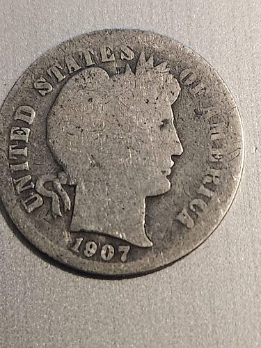 1907 Barber Dime P VG8