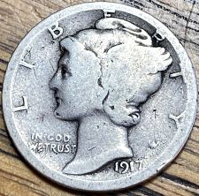 1917-S About Uncirculated Mercury Dime    (150-E)1917-S About Uncirculated Mercury Dime    (150-E)