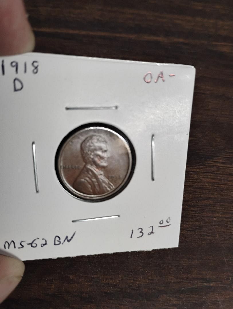 1918-d lincoln wheat cent ms-62 brown rotated die on reverse