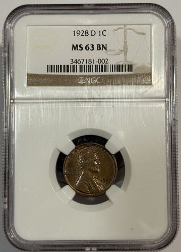 1928-D Lincoln Cent MS63BN NGC, (12574)1928-D Lincoln Cent MS63BN NGC, (12574)