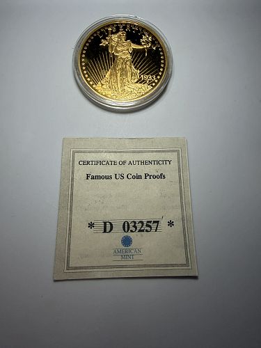 In 1904, President Theodore Roosevelt decided that American coins lacked artistic merit and needed to be redesigned. Roosevelt commissioned Augustus Saint-Gaudens, a master sculptor, to revamp boththe $10 Eagle and the $20 Double Eagle; the new Double Eagle depicted a striding Liberty figure, while the Eagle featured Liberty wearing an Indian war bonnet. These Saint-Gaudens gold coins are considered by collectors to be the most beautiful U.S. coins ever created. This stunning replica features a unique reverse proof finish.