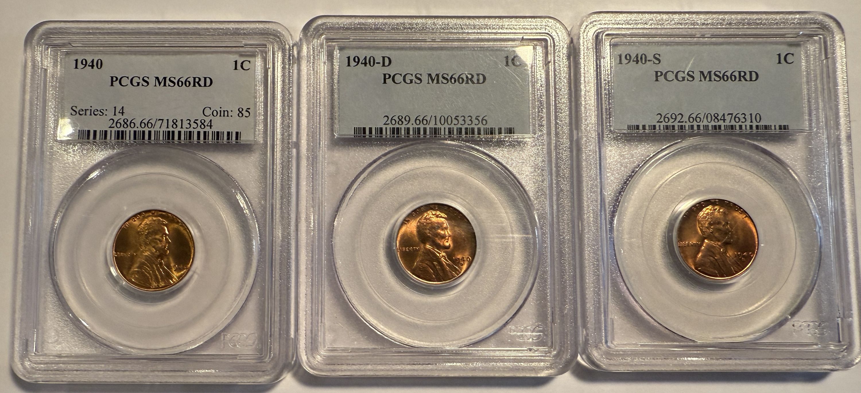 1940 P ,D ,S Lincoln Cents. MS66RD PCGS, (12666)1940 P ,D ,S Lincoln Cents. MS66RD PCGS, (12666)