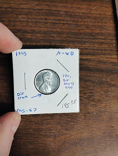 1943 LINCOLN WHEAT CENT MS-67 DIE CRACKS OBVERSE & REVERSE ERROR COIN