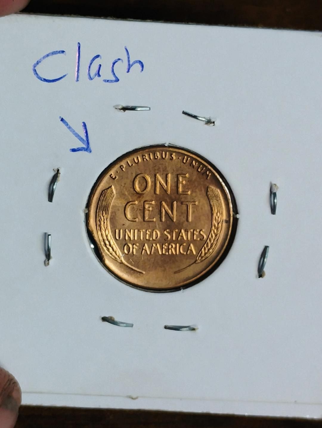 1945 lincoln wheat cent ms-65 red clip & reverse clashed die error coin