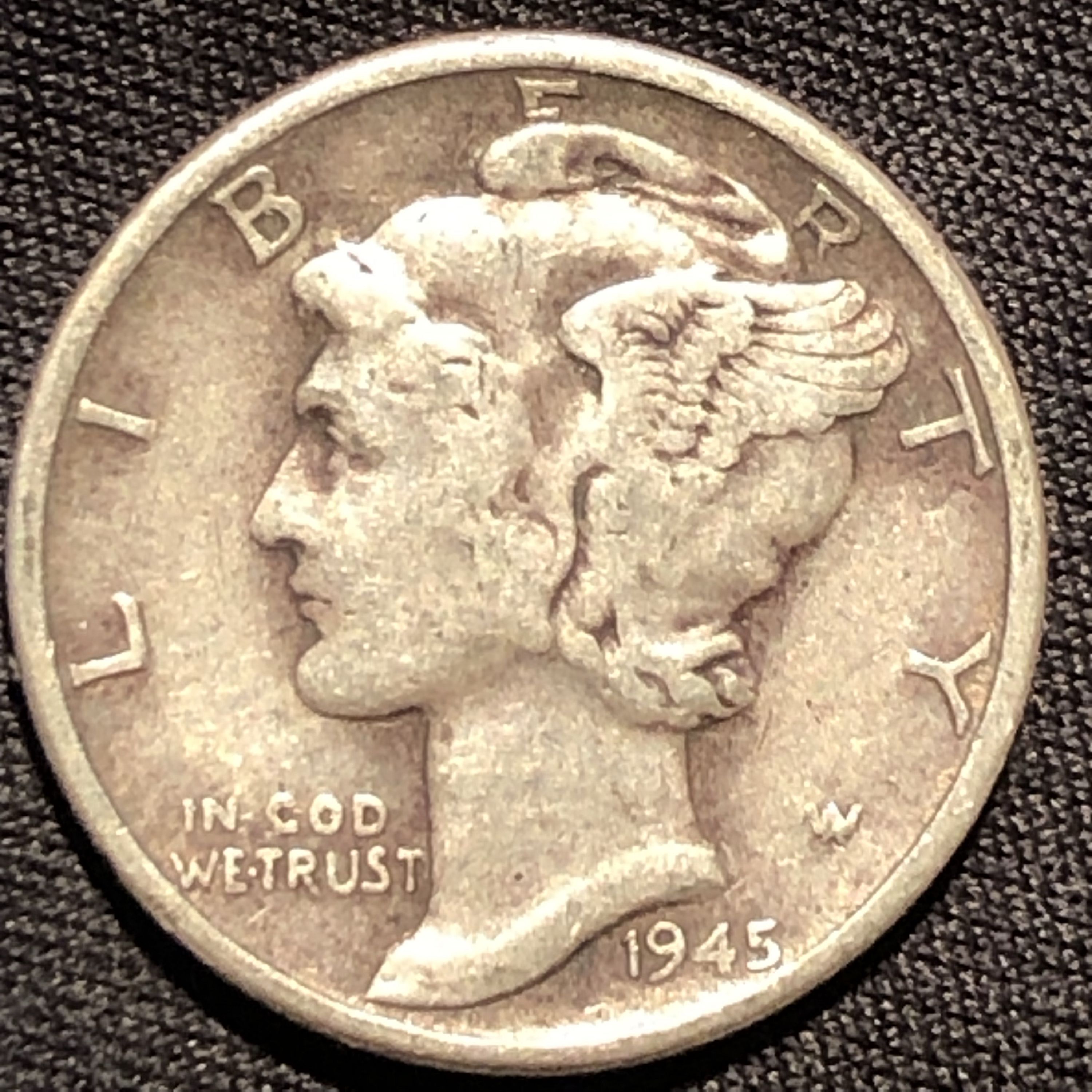 1945-P Mercury Dime Silver Coin - VF (Very Fine) condition