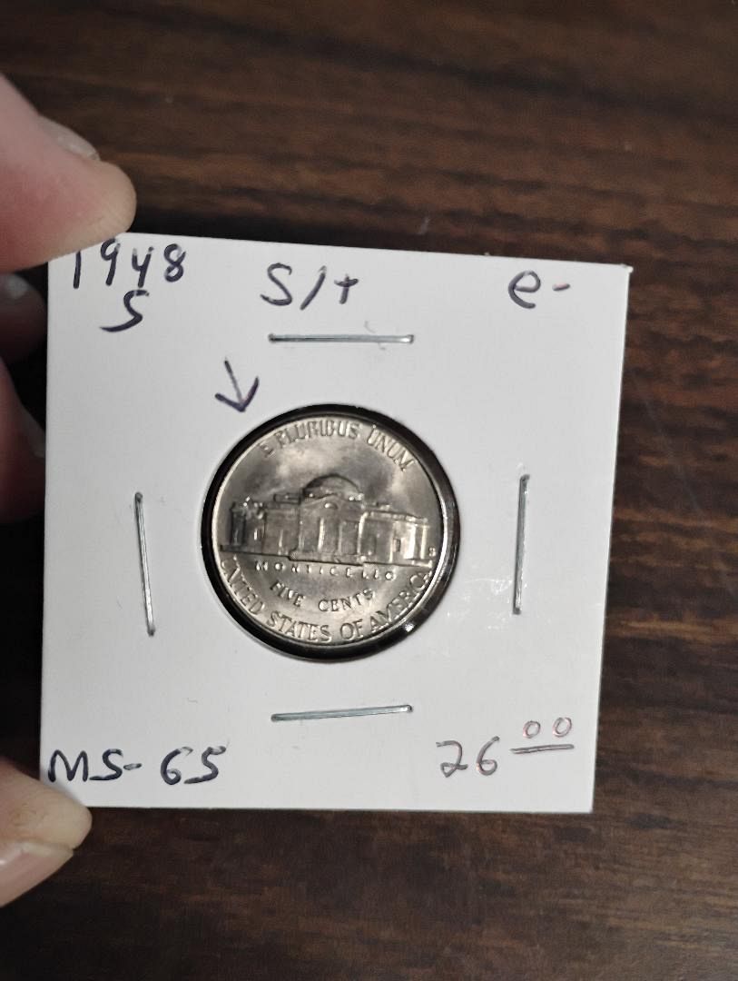 1948-S JEFFERSON NICKEL MS-65 STRUCK THROUGH ON REVERSE